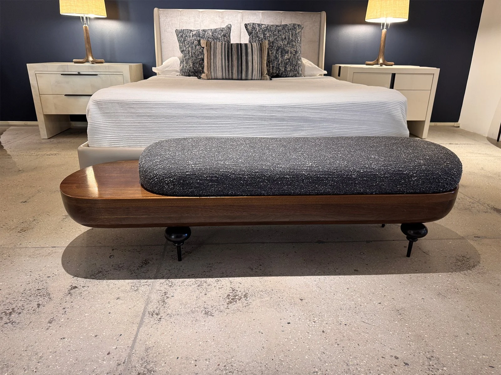 Drawing inspiration from the minarets atop the mosques in Istanbul Turkey. The delicate hand cast bronze legs support an arc shaped base with soft upholstered seating
